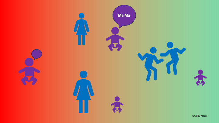 Regarding the first of these, children learn words in a caregiving environment where, in amongst their babble, their caregivers respond with joy and encouragement when they babble something approximating a word. For example, think about the reaction of the mother when their infant first babbles “Ma” in a conventional nurturing care environment. The mother communicates joy and encouragement to the infant. Through the emotional connection that is in place in such moments, the infant experiences a corresponding positive emotion that reinforces their vocalisation of “Ma” when orienting to their mother. As time passes, the infant babbles other approximations of words and is similarly acknowledged and reinforced for those vocalisations over others that do not sound like words to their parent. In this way, the infant begins to express sounds that lead to a response from their parents over sounds that do not.