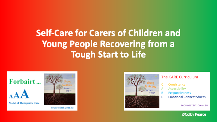 This handbook is a PDF version of a two-hour talk to kinship carers of Australian Aboriginal Children, delivered on September 18, 2023. The brief for this talk was to deliver content on how early trauma impacts the developing in central nervous system and how to regulate known challenges that arise. In preparing for delivery I was acutely aware of how multi-faceted the topic is and that broad coverage goes beyond the time set aside for this session. To support access to additional information of relevance to the topic I have included links to other sources of information, including other self-paced learning modules I have made available on the Secure Start site. The module is relevant to carers of all children and young people recovering from a tough start to life, including foster and kinship carers, residential carers, teachers and educators.